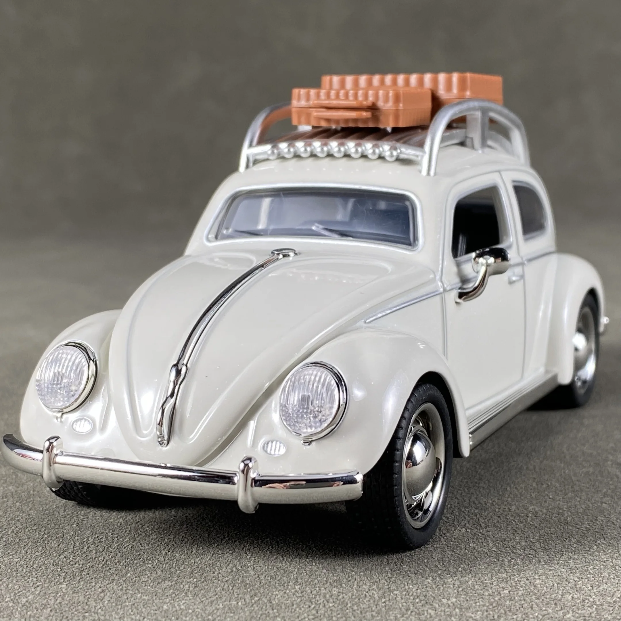 1:32 Volkswagen Beetle Travel version Compact sedan Alloy Metal Diecast Model Car Sound & Light Pull Back Collectibles Hobby Boy
