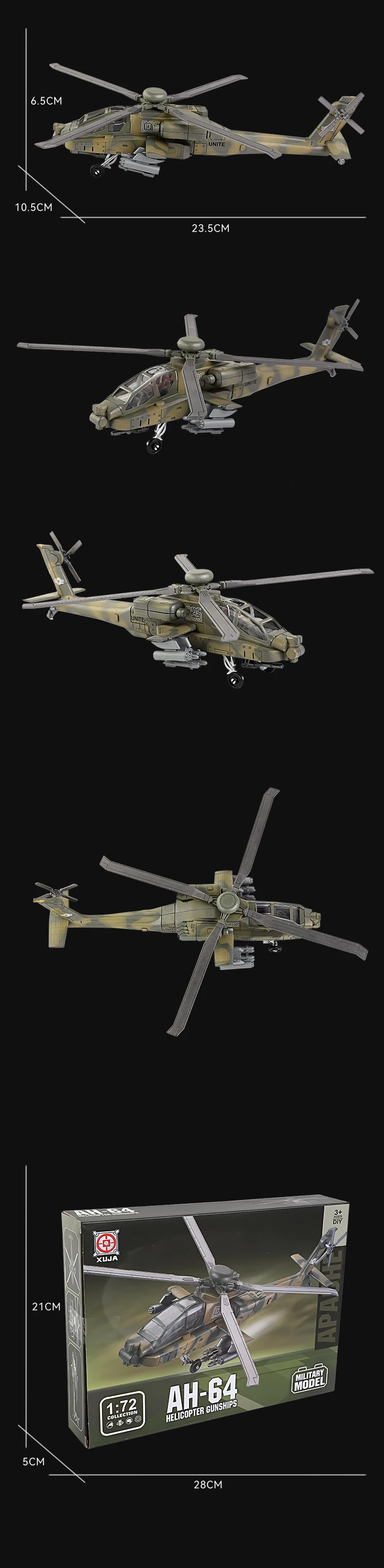 1:72 AH-64 Apache Attack Helicopter Model Creative Military Series Building Blocks Decor Assembled Toys For Boys Christmas Gifts